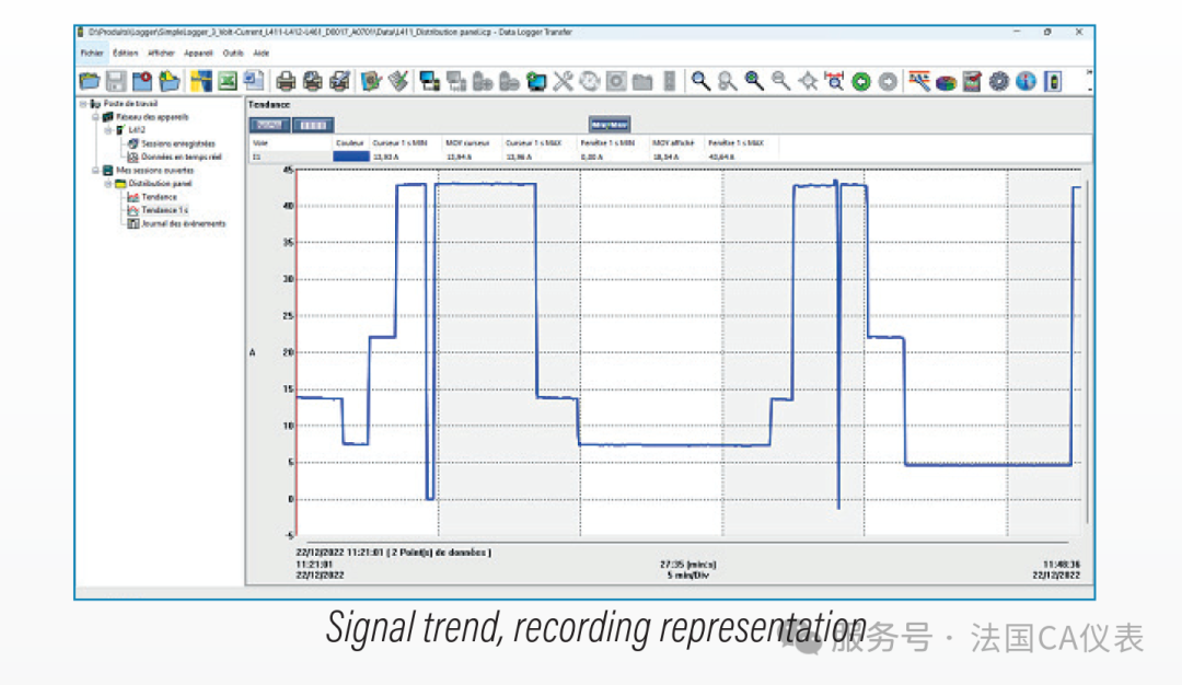 L411/L412/L461数据记录仪适用于简单电路或馈线的电流监测。兼容多种传感器(支持CA电能质量用电流钳),支持复杂配电系统监控。专为光伏设计,检测电压波动或异常,保障太阳能系统稳定性。通过收集电流数据有助于在潜在问题(例如过热、过载等)变得严重之前发现它们。记录还能提供导致故障的断电或变化的证据。记录仪可用于监测和分析楼宇或工业负载的能耗,从而优化能源效率。可根据需要长时间运行,并且设置非常简单。这些设备可以通过 USB 端口进行通信,也可以通过 WiFi 模式联网。数据记录器传输软件用于配置设备并处理所有测量数据。